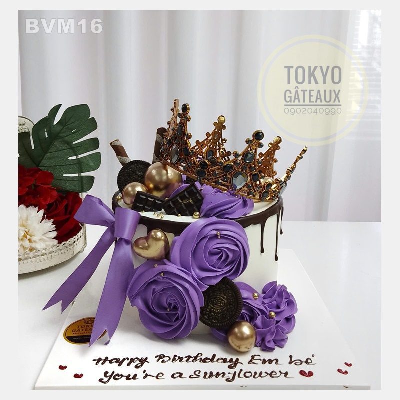 Bánh sinh nhật Vương Miện Hoa Tím trang trí vương miện sang trọng với những bông hoa kem tím dọc thân bánh. Chiếc bánh được chị em yêu thích.