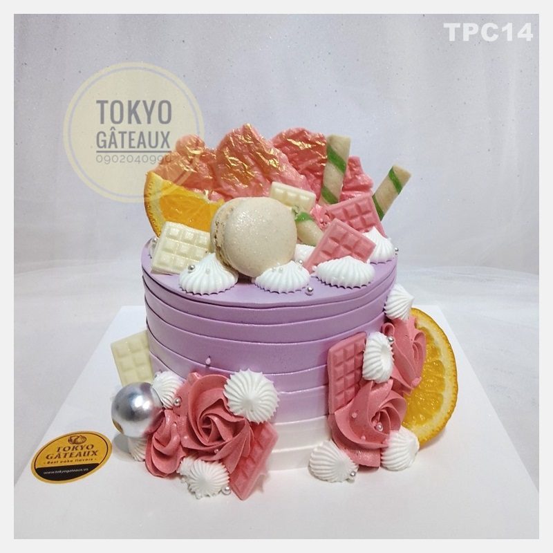 Bánh sinh nhật Socola cam tươi mang tone màu tím hồng hiện đại, trẻ trung nhưng cũng không kém phần cá tính, được các bạn nữ vô cùng ưa chuộng.